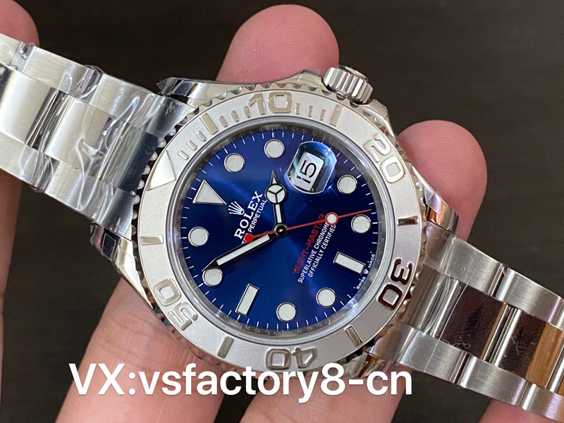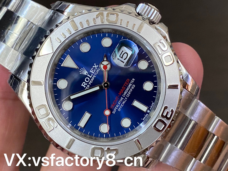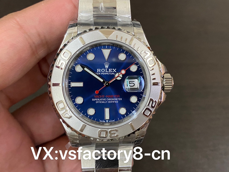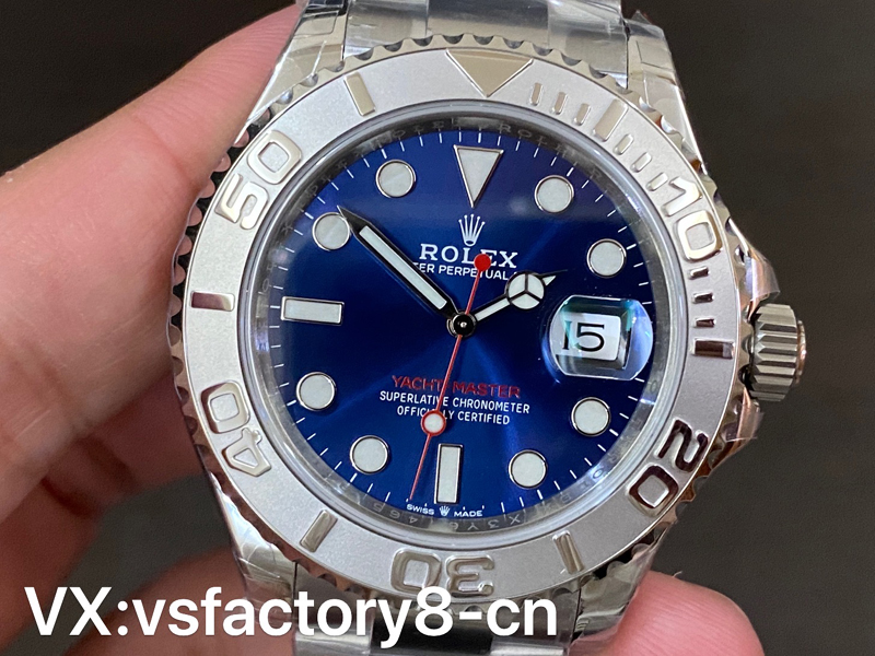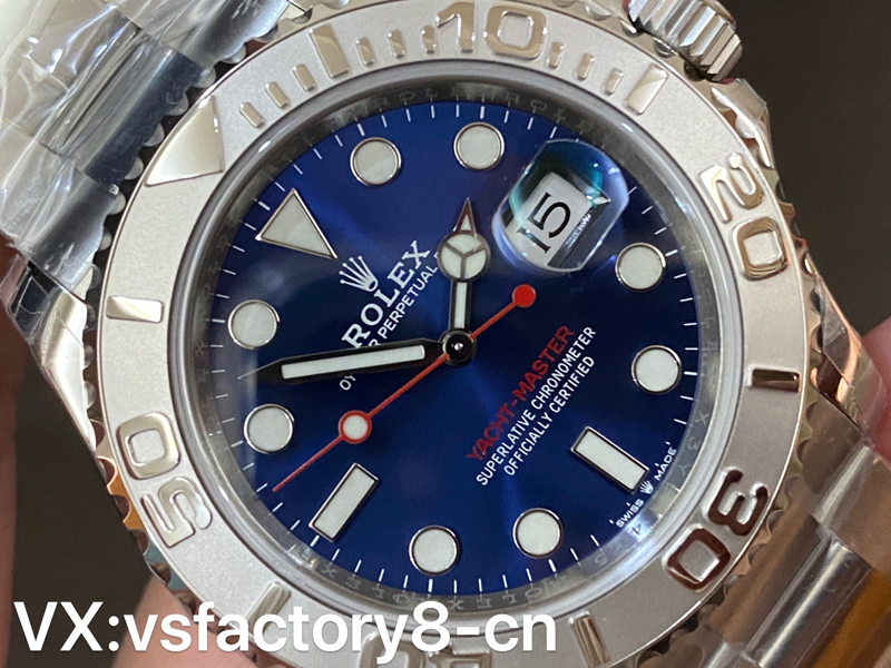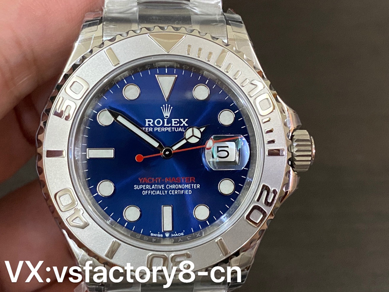 VS厂推出劳力士蓝游艇40mm系列126622复刻表,左侧蓝色面因为在柔光箱中,显得色差有些大,但是在自然光线下,相似程度高达95%以上,后面会放出自然光对比。