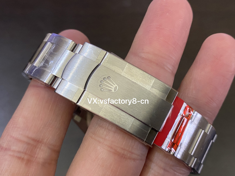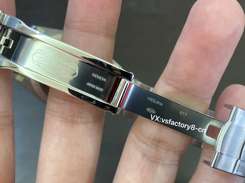 VS厂对于细节的追求大家有目共睹,表扣上的logo也是工艺的一大突破。cnc雕刻,形状规整 并且内侧伴有亮光处理。
