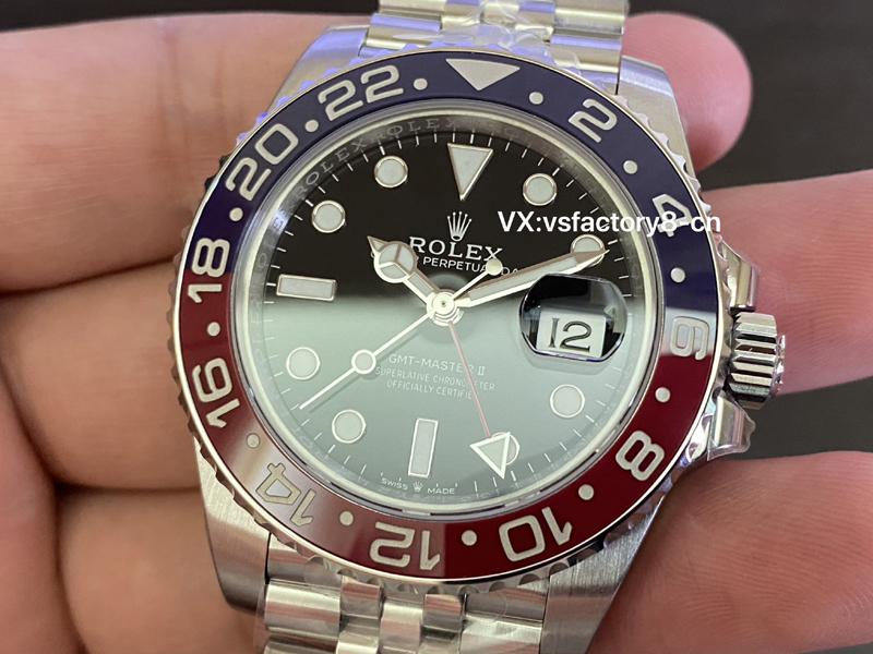 VS厂2025年全新劳力士格林尼治可乐圈在紫外灯照射变色上,红色更加的明显,紫外线照射对于一般人来说可有可无。