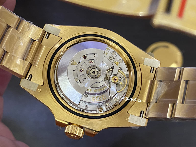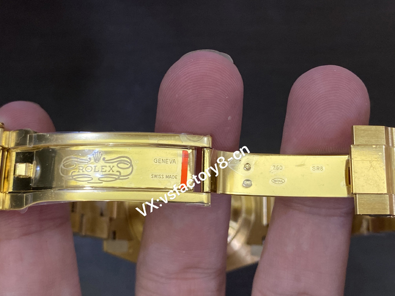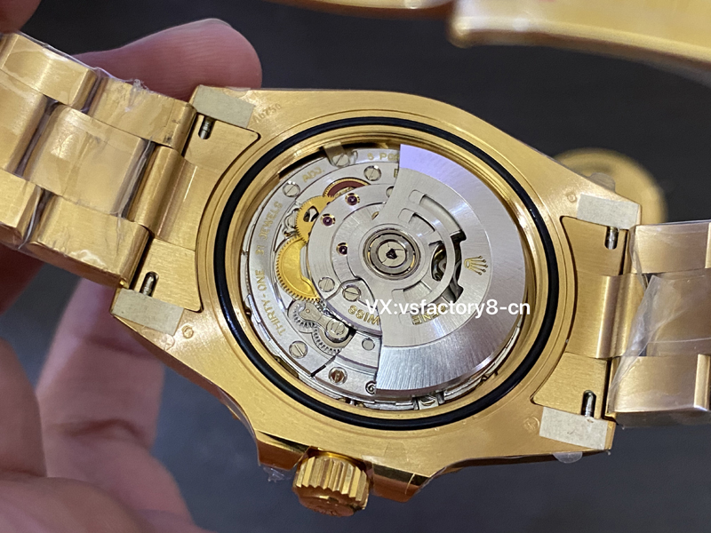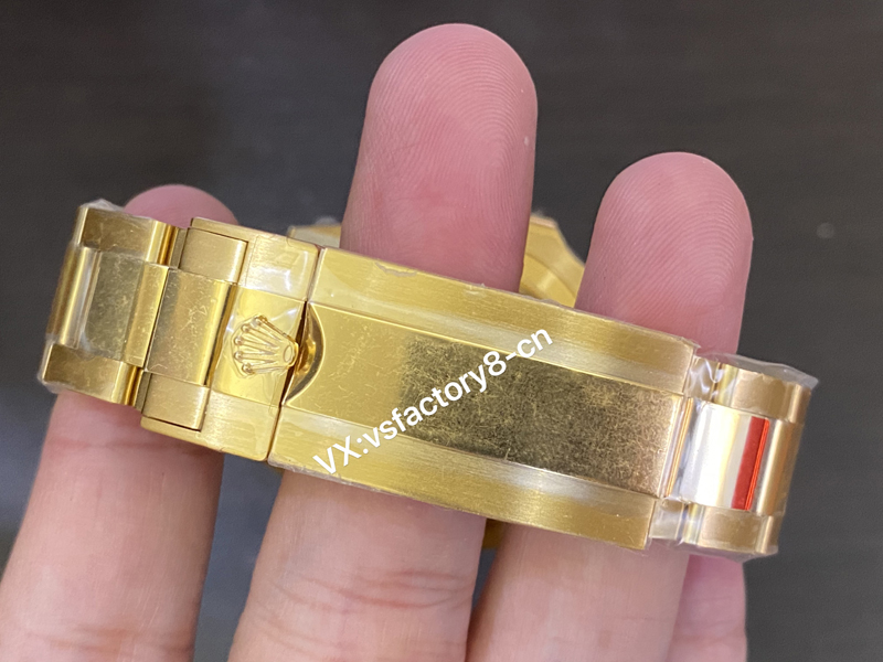 904L精钢表壳以及表带表扣全面进行了真空电镀黄金水。