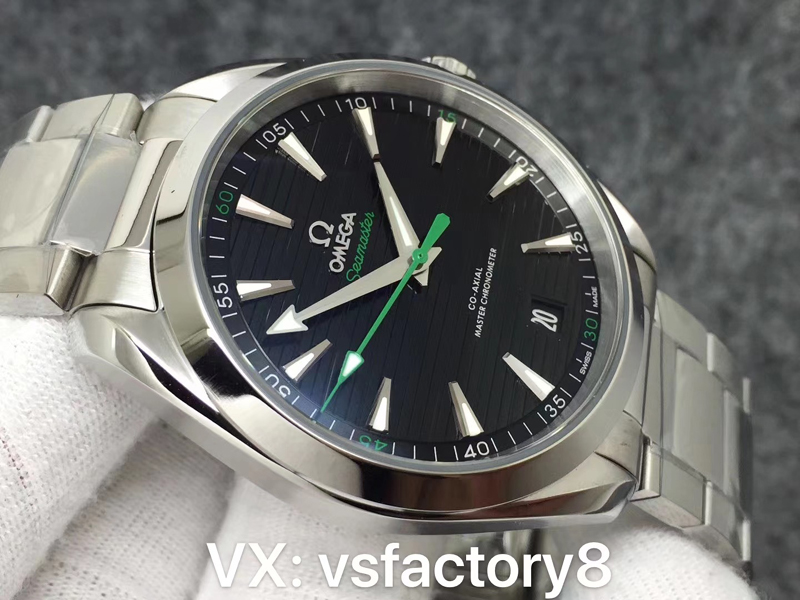 VS厂欧米茄海马150米新品:日配绝佳之选海马150米 Aqua Terra天文台,同步正品一直41mm,海马150M“柚木”横纹盘至臻天文台腕表绿盘。