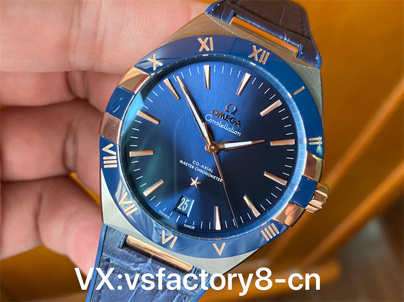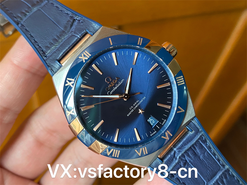 VS手表厂全新欧米茄精钢间玫蓝圈蓝面星座顶级复刻表最好的版本,值得您的拥有。