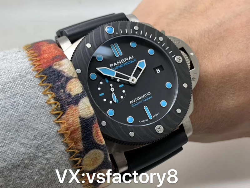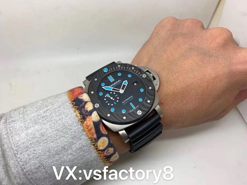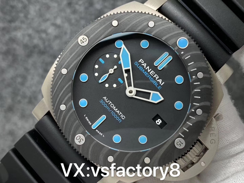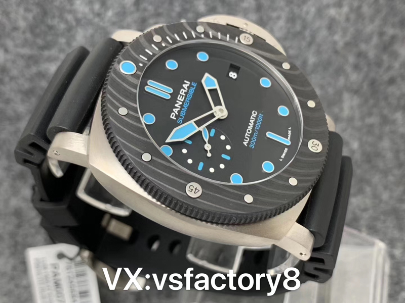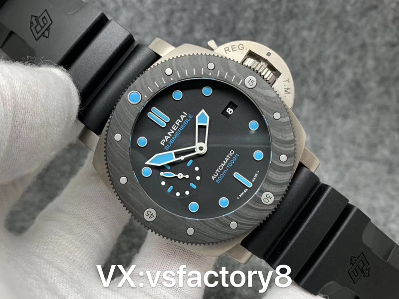 VS厂手表官网新品:VS厂沛纳海PAM00799 ,47mm ,CARBOTECH碳纤维旋转表圈,黑色表盘,蓝宝石玻璃鱼眼,自动上链机械机芯,橡胶表带。