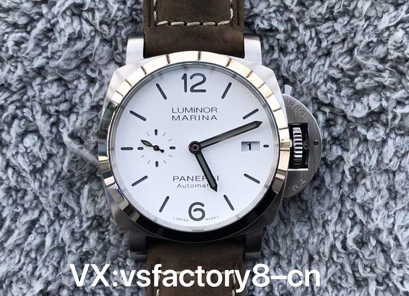 1:VS厂沛纳海1394“白马王子”白面三文治表盘,磨砂白面,干净利落。